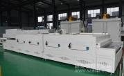 2、外形尺寸(約):總長7.6米*高1.5米*寬2.3米;輸送面離地面高0.84米±0.025米可調節;進料區2米,加熱段5米(分三段),出料區0.6米;